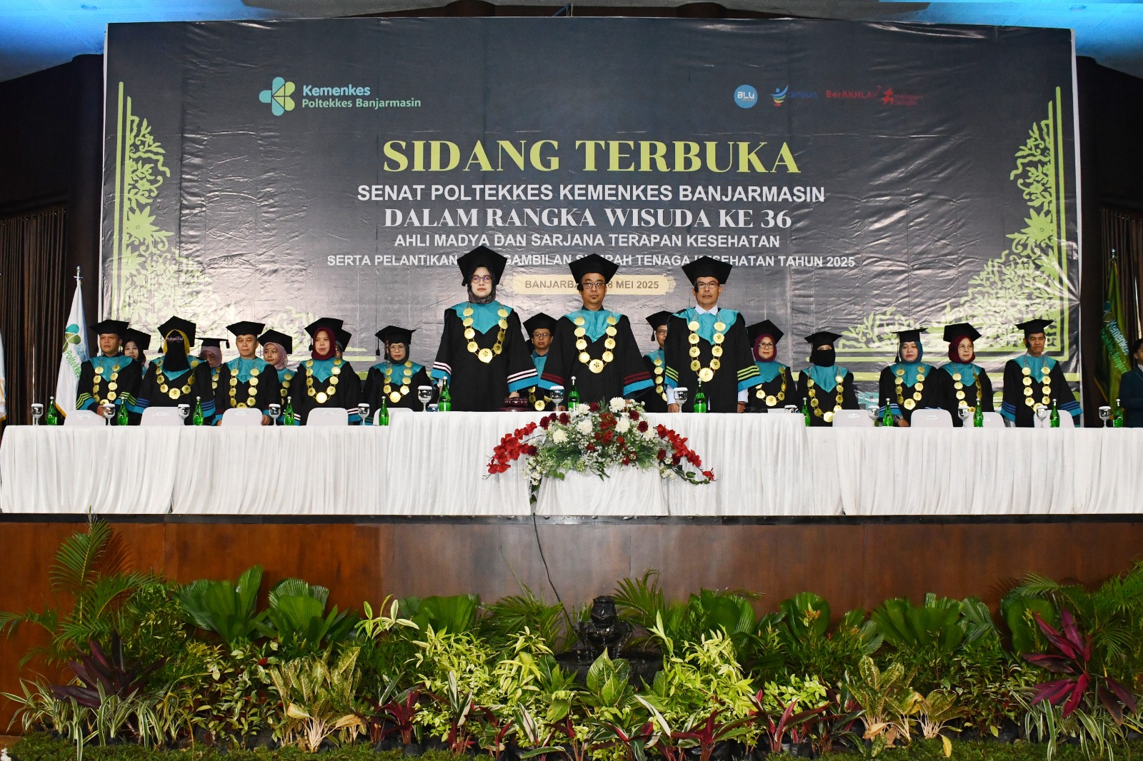 Banjarbaru, 28 Mei 2025 – Politeknik Kesehatan Kementerian Kesehatan (Poltekkes Kemenkes) Banjarmasin sukses menyelenggarakan Wisuda ke-36 bagi