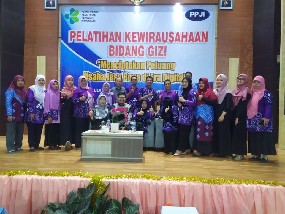 Banjarbaru, 28-29 November 2019. Poltekkes Kemenkes Banjarmasin Jurusan Gizi mengadakan kegiatan Pelatihan Kewirausahaan Bidang Gizi dengan tema yaitu " Menciptakan Peluang Usaha Jasa Boga di Era Digital". Pelatihan diikuti oleh seluruh mahasiswa Jurusan Gizi Poltekkes Kemenkes Banjarmasin, acara bertempat di Aula 2 Poltekkes Kemenkes Banjarmasin.