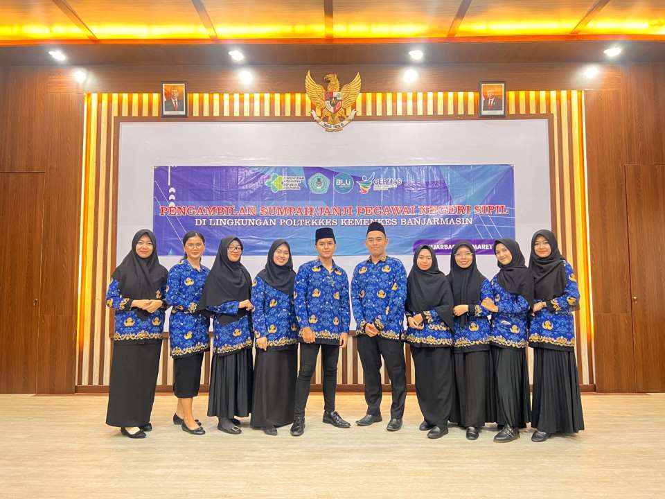 Pengambilan sumpah/janji disaksikan oleh rohaniawan dari Kementerian Agama dan juga dihadiri oleh pejabat-pejabat di lingkungan Poltekkes Kemenkes Banjarmasin.