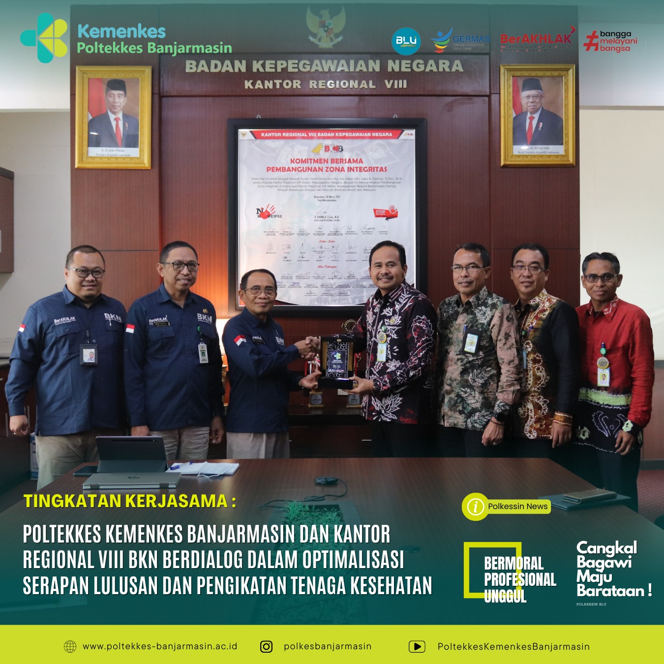 Poltekkes Kemenkes Banjarmasin melakukan silaturahmi dengan Kantor Regional VIII Badan Kepegawaian Negara. Pertemuan ini bertujuan untuk