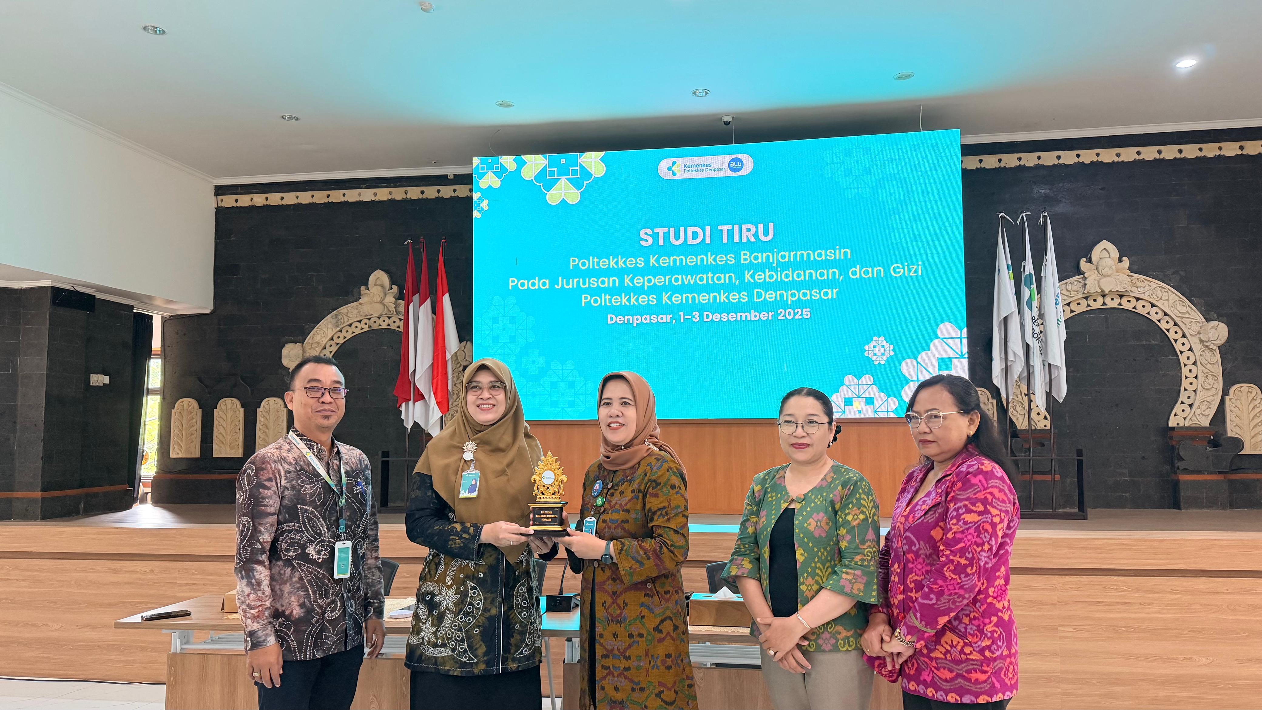 Denpasar, 1-3 Desember 2025. Poltekkes Kemenkes Banjarmasin melaksanakan kegiatan benchmarking ke Poltekkes Kemenkes Denpasar pada 1–3 Desember 2025. Kunjungan ini bertujuan untuk memperkuat pengelolaan akademik dan sistem penjaminan mutu, serta meningkatkan tata kelola sarana dan prasarana—khususnya laboratorium—pada tiga jurusan: Keperawatan, Kebidanan, dan Gizi.