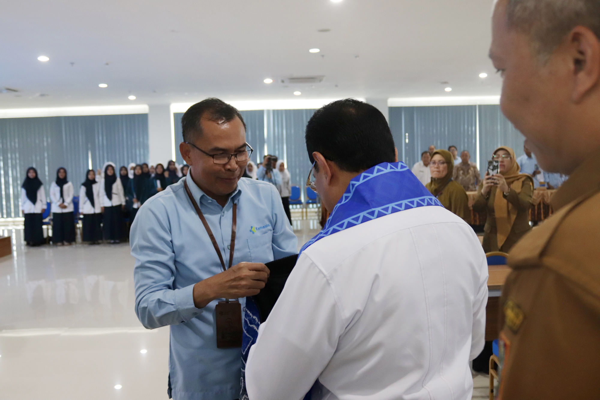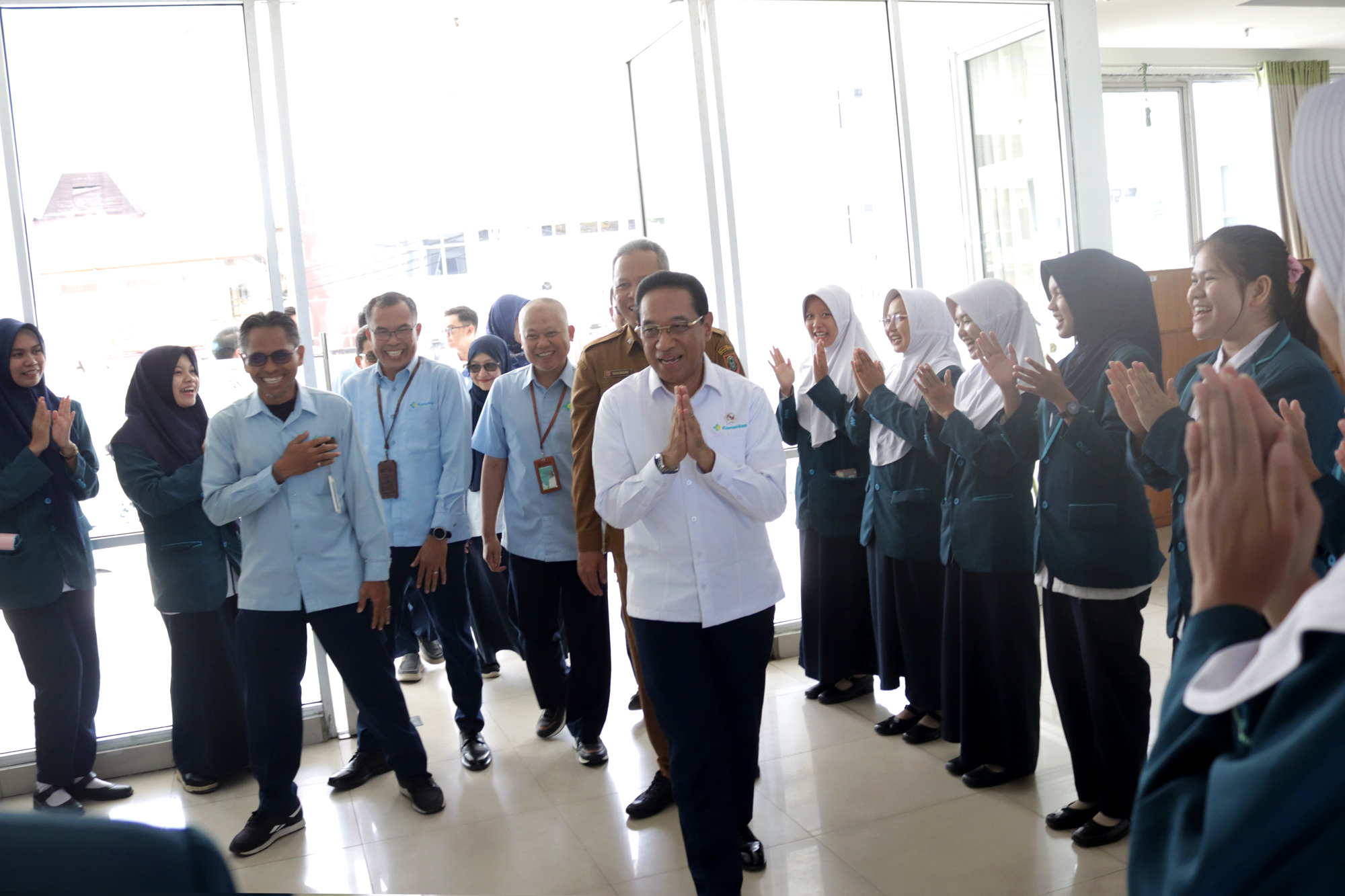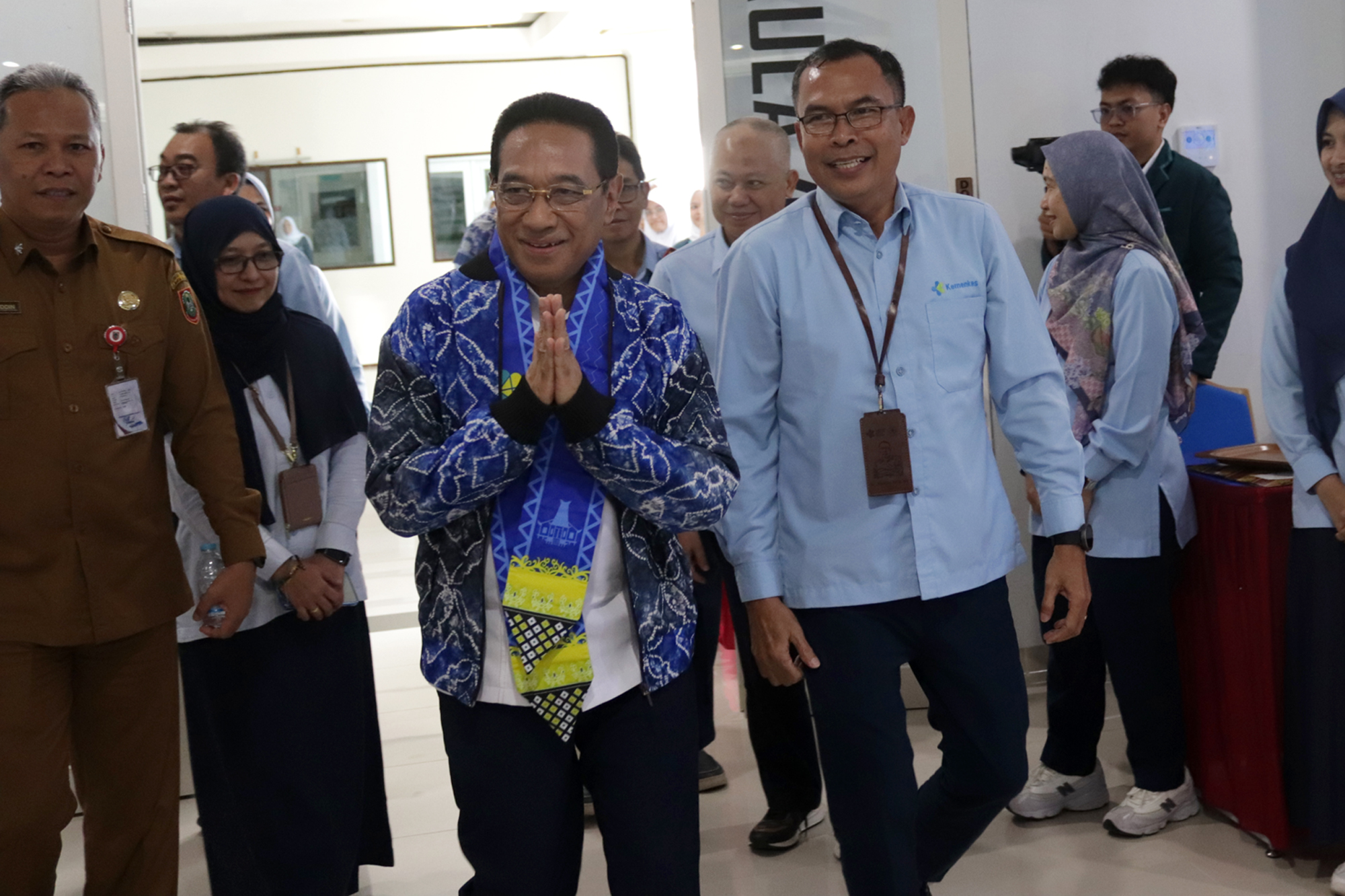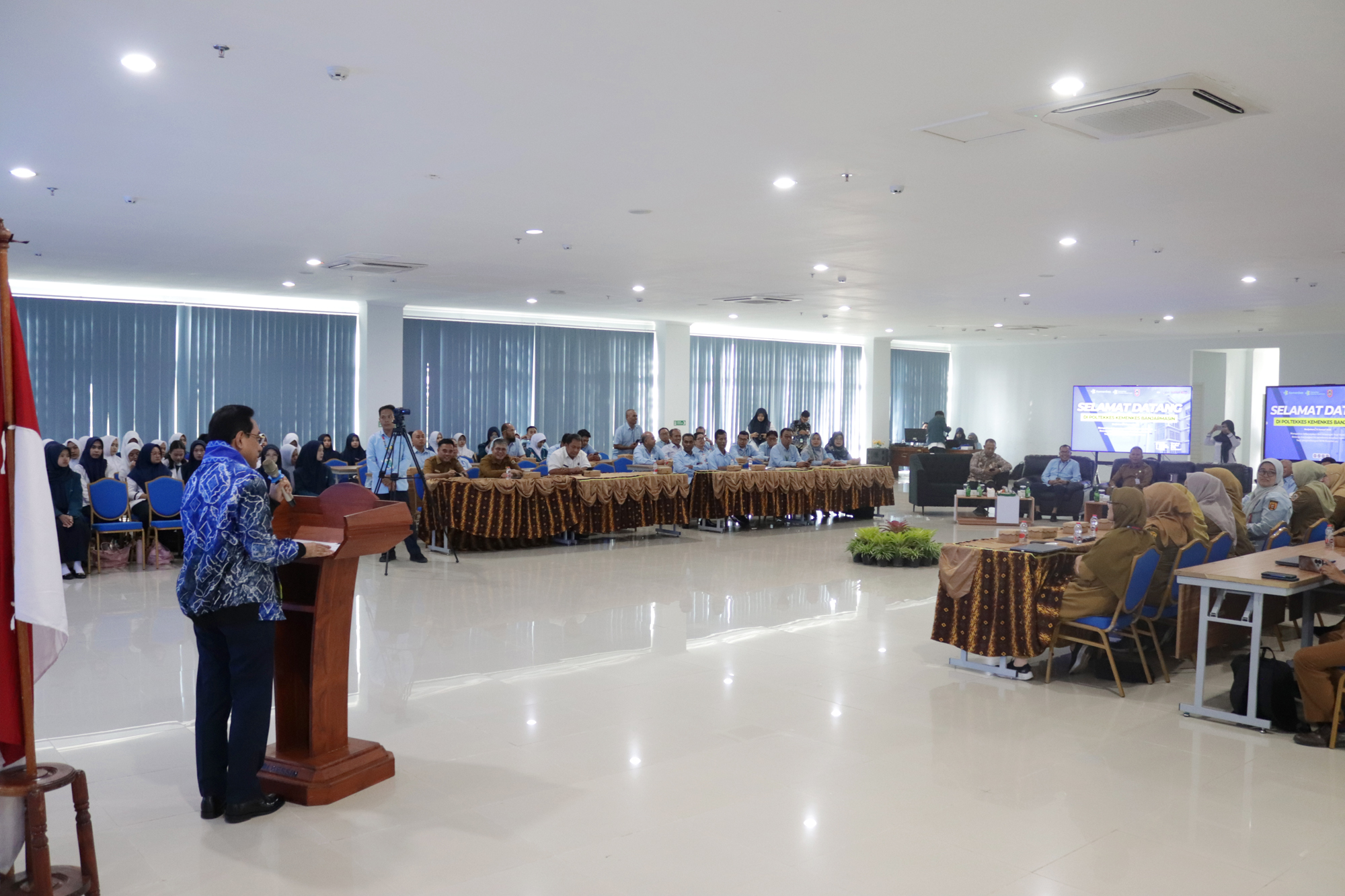 Kedatangan Wakil Menteri Kesehatan disambut langsung oleh Plt. Direktur Poltekkes Kemenkes Banjarmasin, Dr. Junaidi, SKM., MS, bersama dosen dan mahasiswa. Turut hadir Kepala Dinas Kesehatan Provinsi Kalimantan Selatan dr. Diauddin, M.Kes, Kepala BBLKM Banjarbaru Budi Santoso, S.KM., MPH, Plt. BKK Kelas I Banjarmasin M. Rasyid Ridha, SKM., MKL, Kepala LAPFK Banjarbaru Yuni Irmawati, SKM., MA, Anggota DPRD Provinsi Kalimantan Selatan Nur Fajri SE serta unsur pimpinan Poltekkes Kemenkes Banjarmasin yang meliputi para Wakil Direktur, Kepala Subbagian, dan Kepala Pusat.