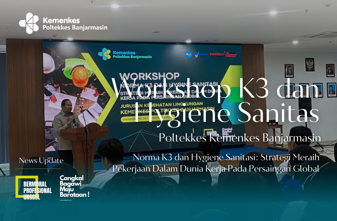 Banjarmasin, 26 Agustus 2024 – Jurusan Kesehatan Lingkungan menyelenggarakan workshop bertajuk "Norma K3 dan Hygiene Sanitasi: Strategi Meraih