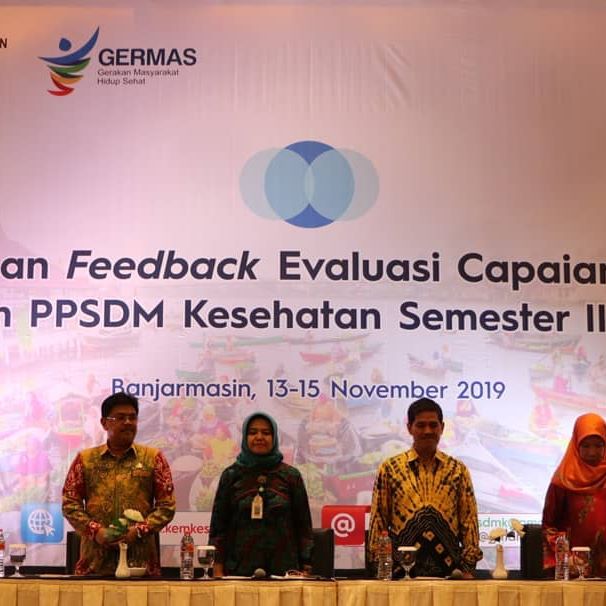 Banjarmasin, 13-15 November 2019. Badan PPSDM Kesehatan Kementerian Kesehatan RI mengadakan Pertemuan Feedback Evaluasi Capaian Kinerja Program PPSDM Kesehatan Semester 2 Tahun Anggaran 2019, bertempat di Hotel Golden Tulip, Banjarmasin, 13-15 November 2019. Pertemuan ini diikuti oleh pengelola laporan evaluasi program PPSDM Kesehatan. Peserta yang menghadiri terdiri atas utusan dari Dinas Kesehatan Seluruh Provinsi di Indonesia, Bapelkes seluruh Indonesia dan Poltekkes Kemenkes yang berada di lingkungan Kementerian Kesehatan seluruh Indonesia yang berjumlah +/- 130 orang. Kegiatan Pertemuan ini telah diadakan rutin sejak dari tahun 2016 s.d sekarang. Pentingnya Pertemuan ini karena memonitoring Desk dan Capaian Kinerja dari Instansi yang berada di Lingkungan Kementerian Kesehatan.