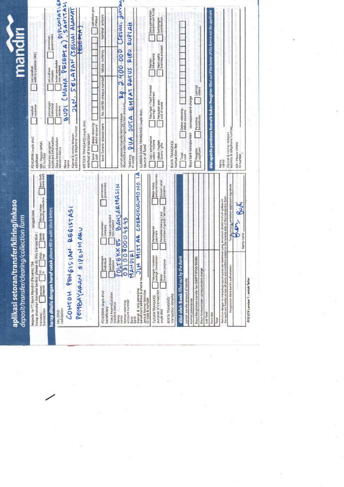- Melakukan pembayaran ke Bank Mandiri No. Rekening 0310-0800-04545 a.n Bendahara Penerima Poltekkes Banjarmasin pada tanggal 01 - 8 Juli 2020 ,